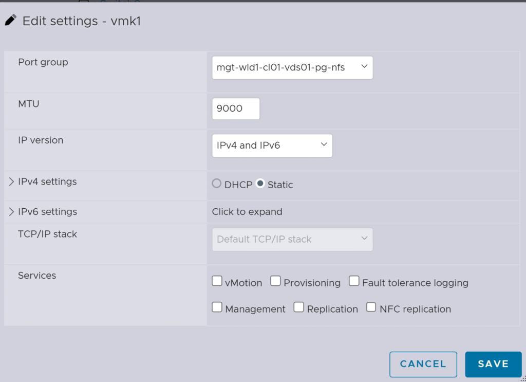 The VCF 9 management domain build is fine for vSAN and FC from my testing, however, users may get stuck when deploying the domain using NFS backed storage and jumbo frames over the network.