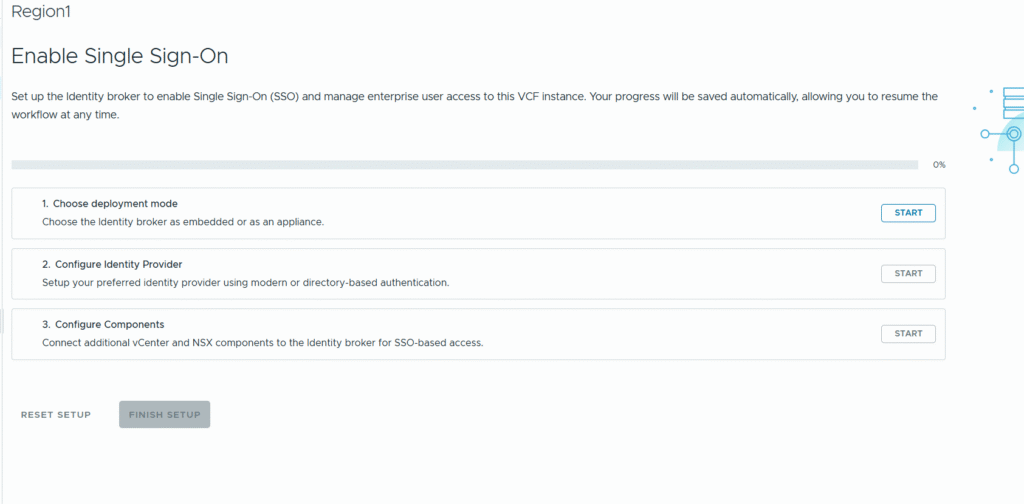 For my dual region VCF setup, I previously setup VCF SSO using embedded vIDB which was hosted on the vCenter mentioned above that had expired passwords.